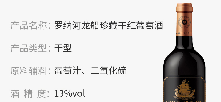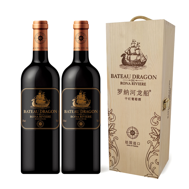 罗纳河龙船 珍藏干红葡萄酒红酒 13%vol 750ml/瓶*2支装 礼盒装